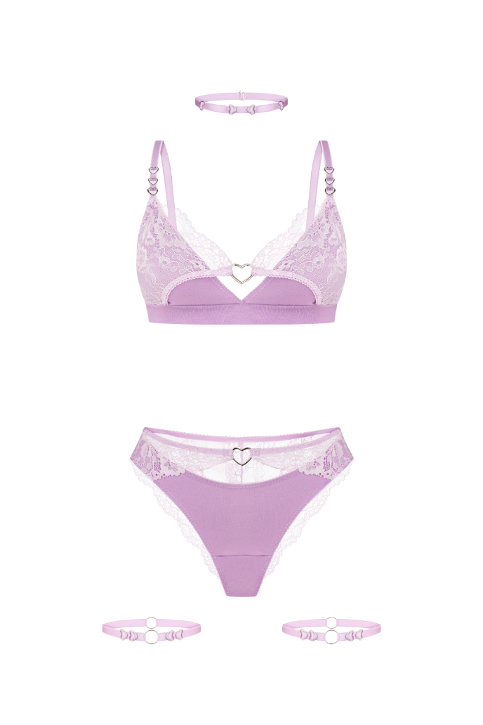 Комплект Heartbeats S Lavender з чокером і гартерами + кольори
