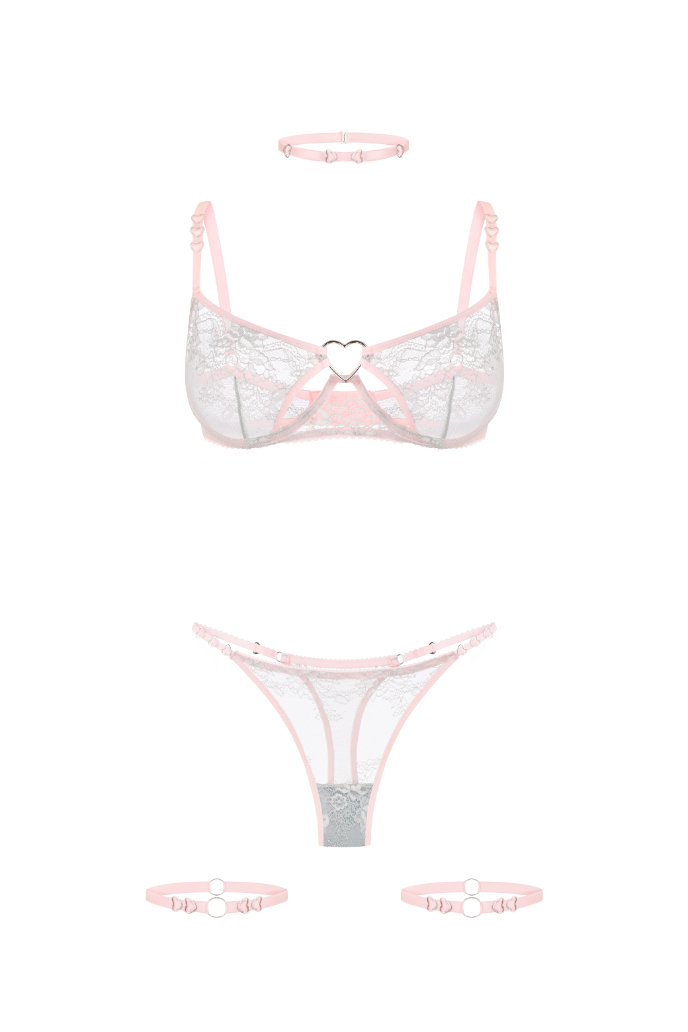 Комплект Amore Pistachio&Pink з чокером і гартерами